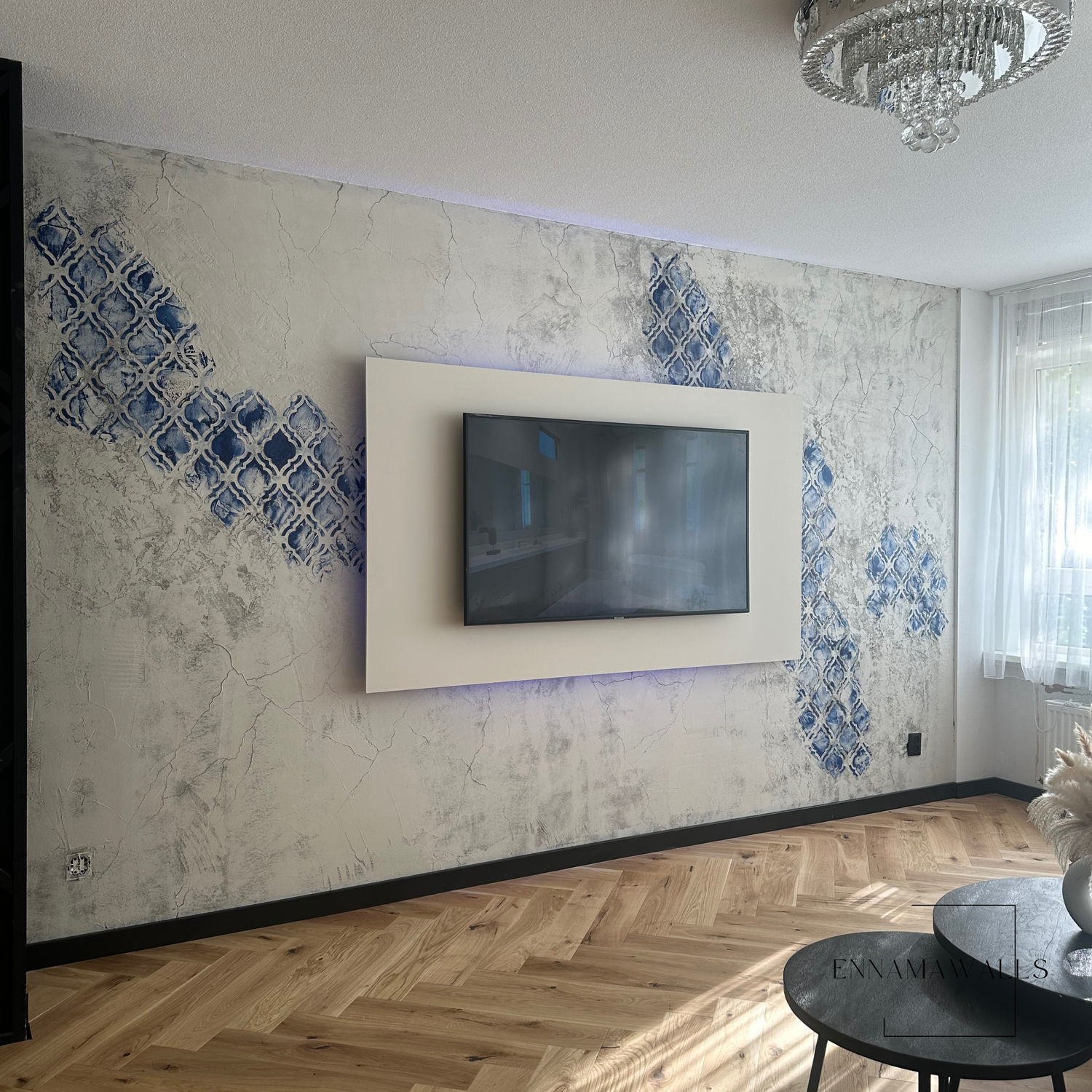 Dit decoratieve stucwerk, vernoemd naar Chefchaouen, is een prachtig samenspel van blauwe tinten. De muren stralen de serene schoonheid van de Marokkaanse stad uit, terwijl de subtiele invloeden van het Hollandse Delftsblauw een uniek karakter toevoegen. De combinatie van deze kleuren creëert een harmonieuze en uitnodigende sfeer, perfect voor het accentueren van een interieur. Dit stucwerk vormt niet alleen een visueel statement, maar brengt ook een vleugje culturele rijkdom en verfijning in elke ruimte.