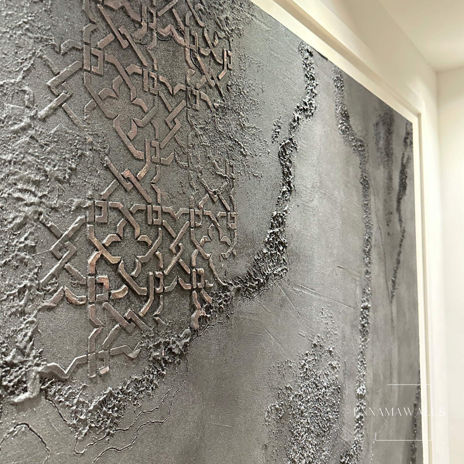 The wal of Stucco “Verweerd elegantie” is een decoratief stucco schilderij dat de schoonheid van de veroudering vastlegt. De donkergrijze tinten stralen een stoere, eigentijdse vibe uit, terwijl de afbrekende bronzen patronen een gevoel van vervlogen glorie oproepen. Dit kunstwerk voegt karakter en diepte toe aan elke ruimte, perfect voor een muur die vraagt om een uniek accent. Het nodigt uit tot contemplatie en vertelt een verhaal van tijd en transformatie.