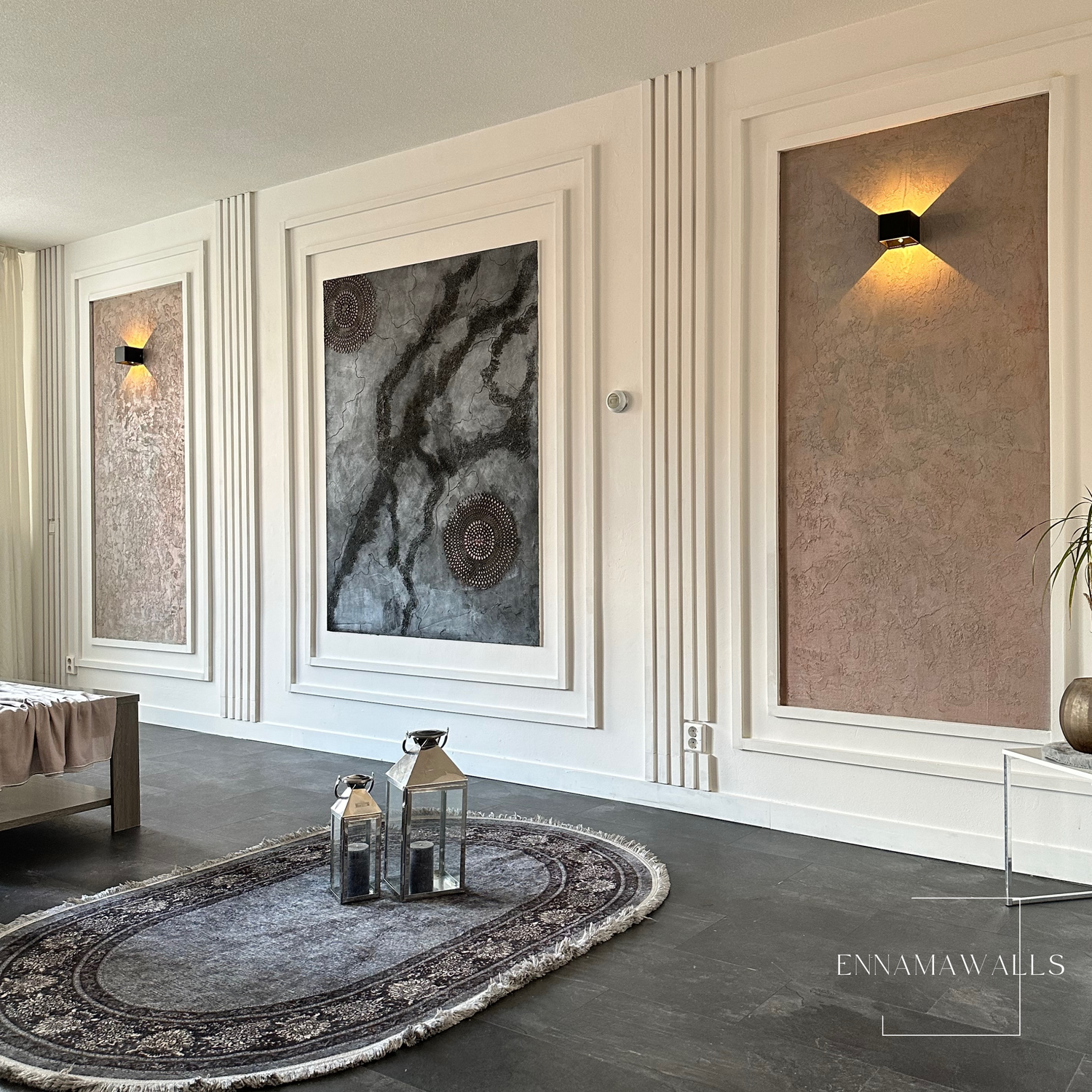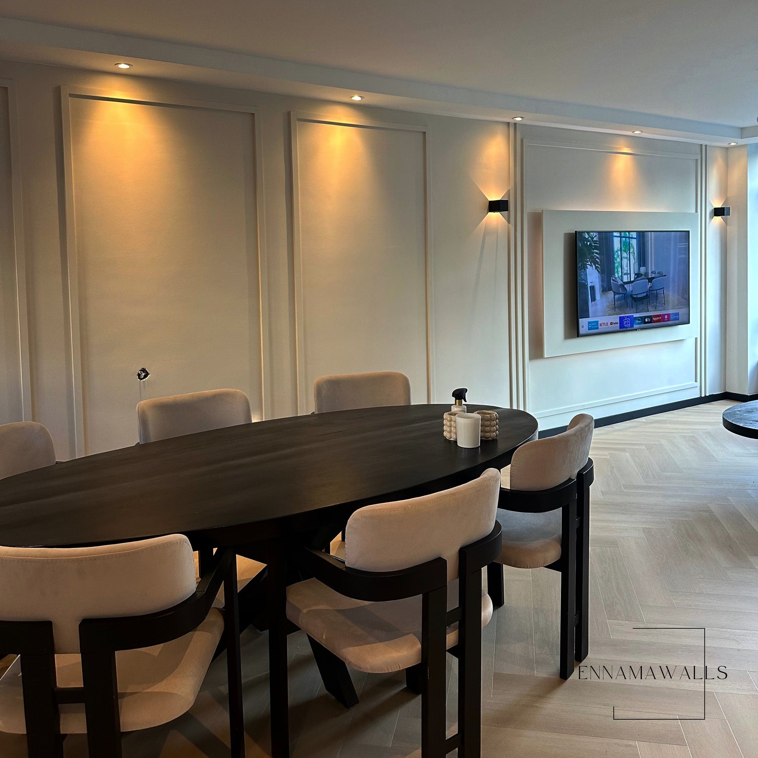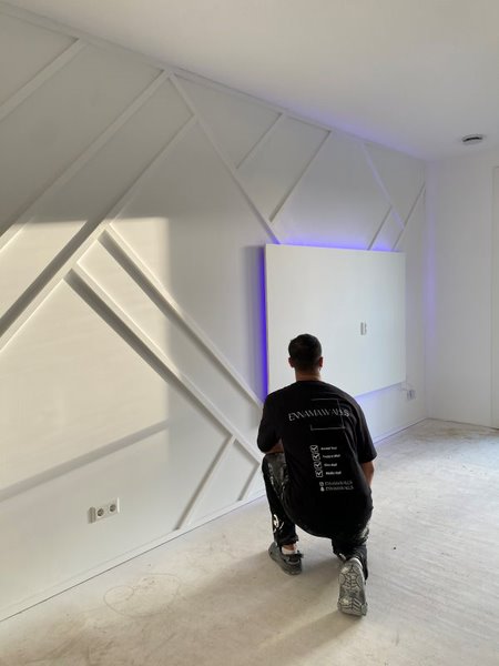 Accentwall Dubai is een elegante warme accentwall, een schitterend voorbeeld van vakmanschap. Het intricate lijstwerk accentueert de muur en voegt diepte en karakter toe aan de ruimte. Met zijn luxe afwerking en unieke ontwerpen biedt het een stijlvolle uitstraling die perfect past bij de moderne architectuur van de stad Dubai. Deze lijstwerk muur is niet alleen een decoratief element, maar ook een statement dat de elegantie van het interieur benadrukt.